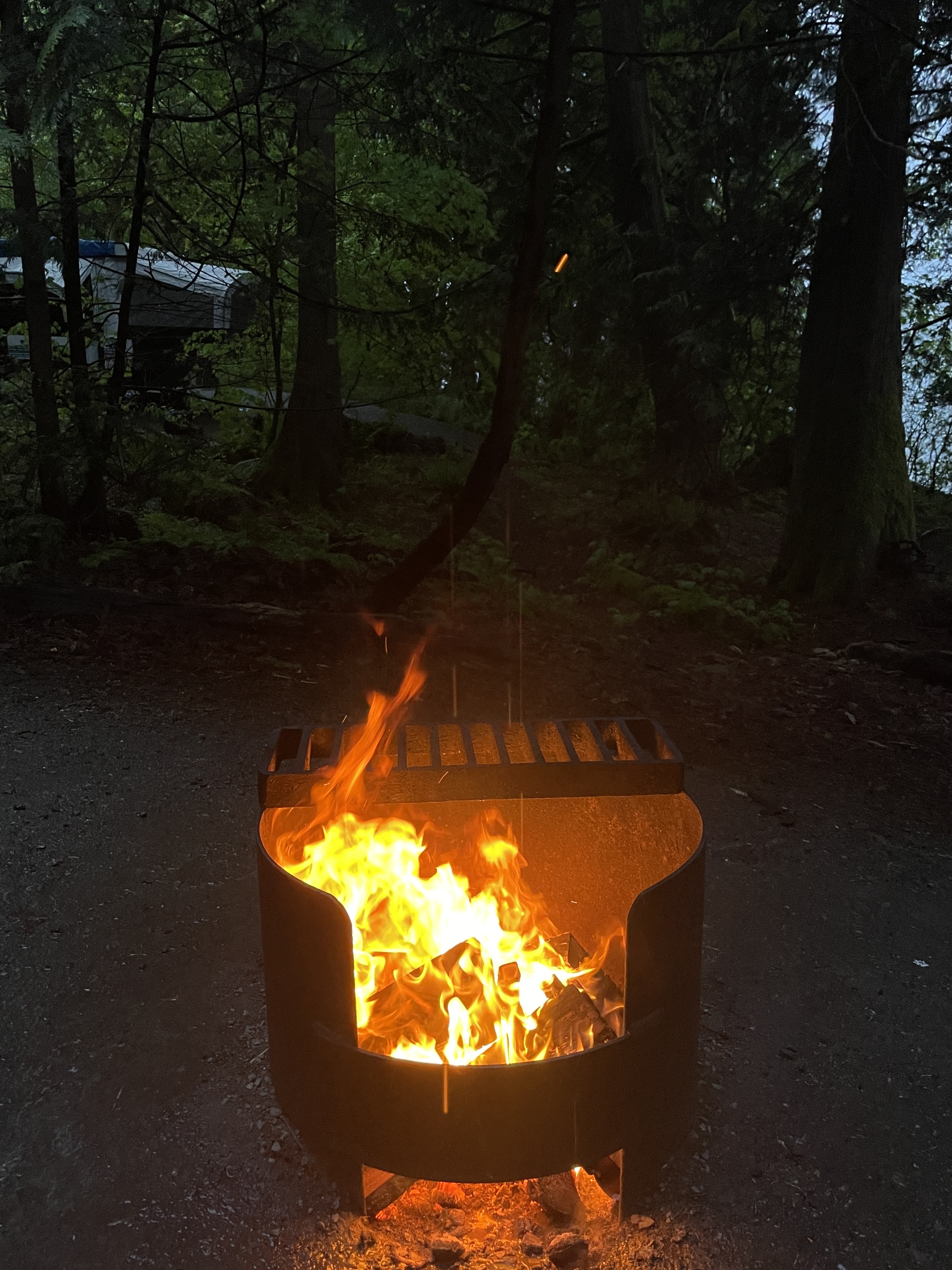 가만히 앉아서 빗소리 들으며, 불멍 때리면서 음식 냄새까지 솔솔 나는데