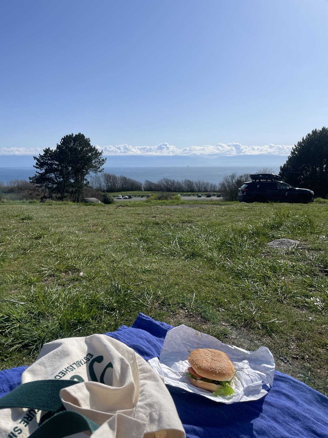 치즈버거를 먹으며 풍경에 빠져있다가